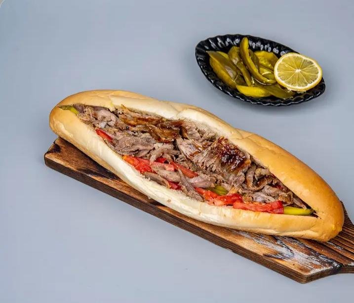 ساندويش شاورما لحم بالصمون الفرنسي
