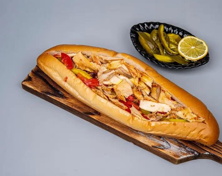 ساندويش شاورما دجاج بالصمون الفرنسي
