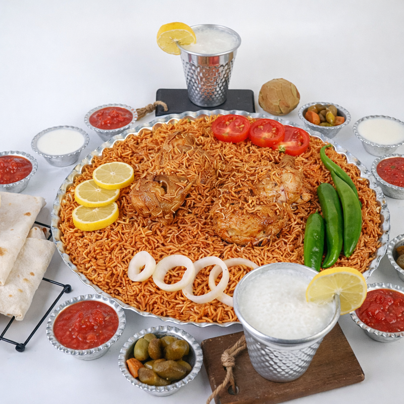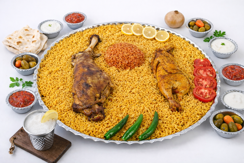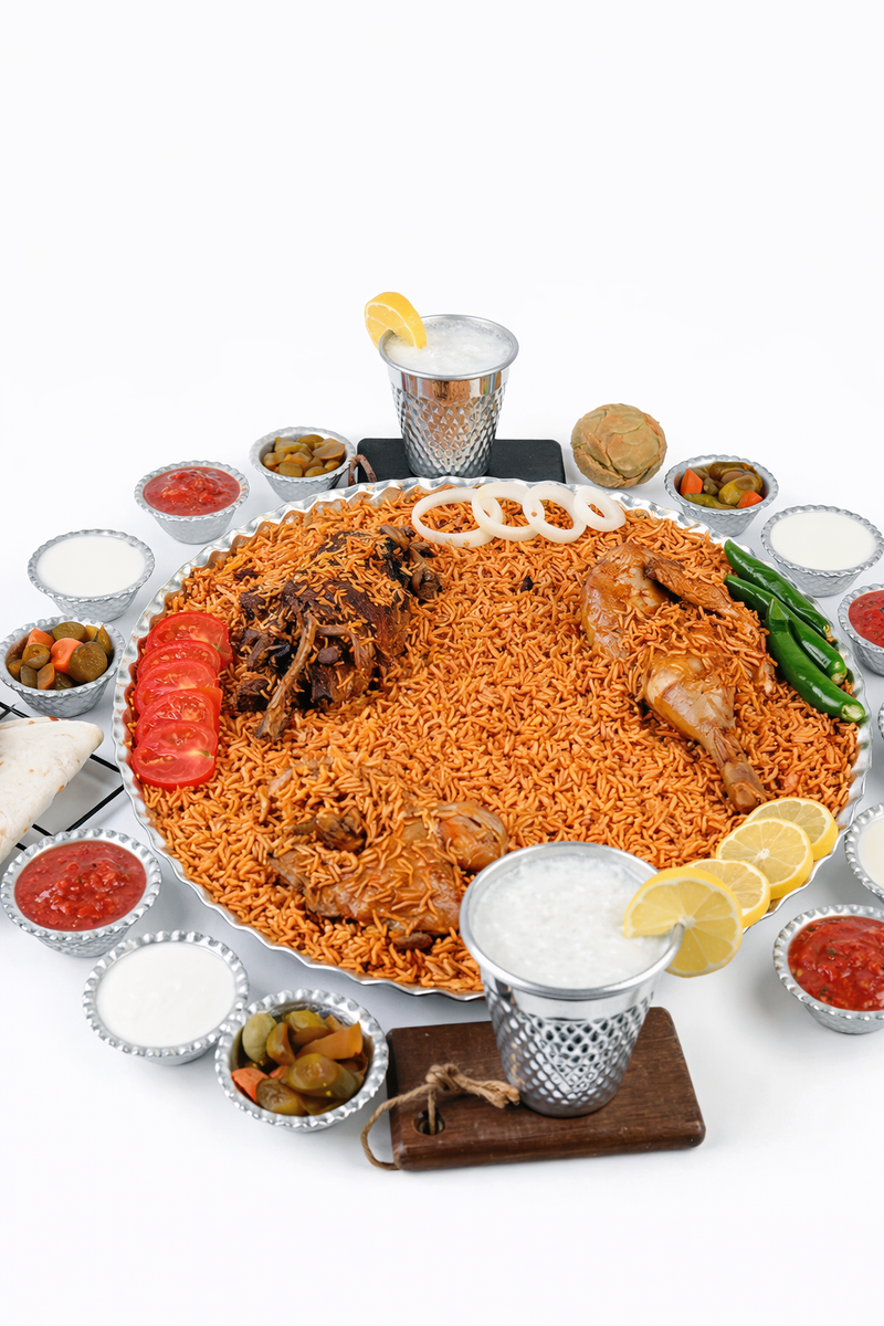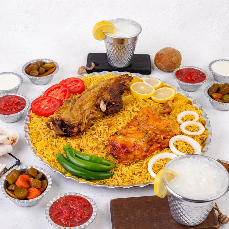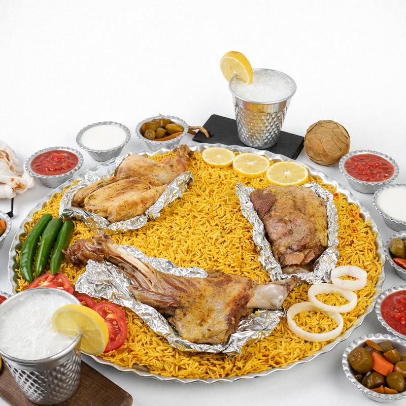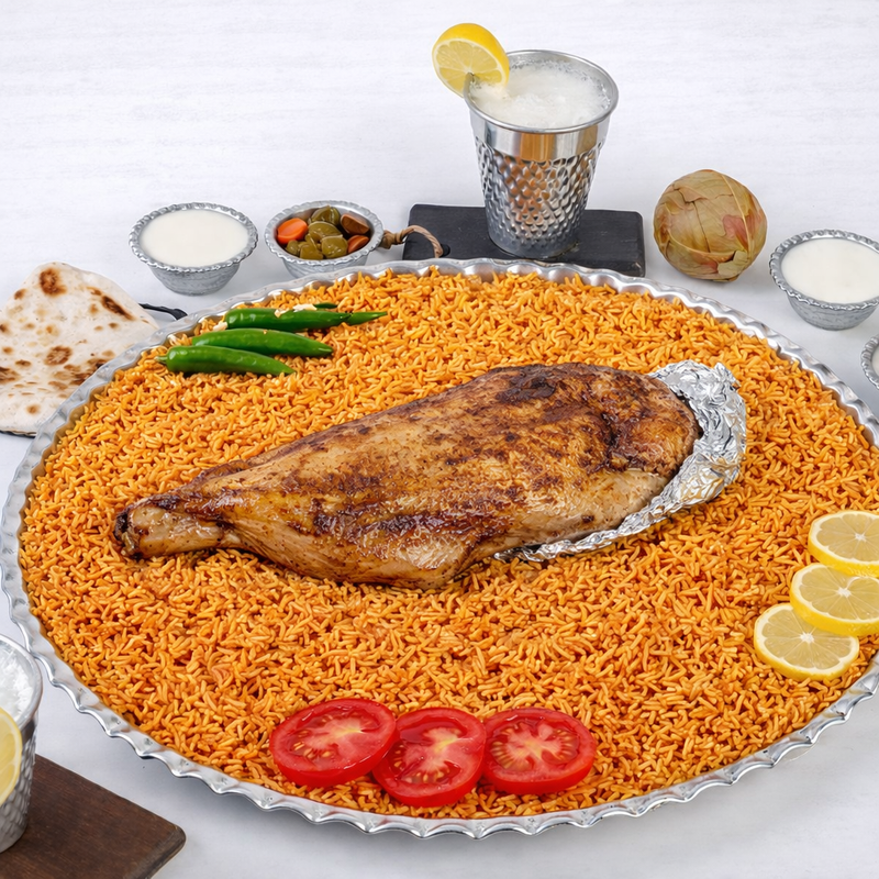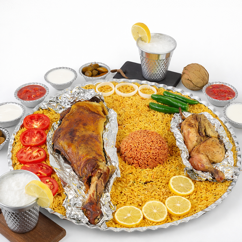 منسف كبسة سفطة ضلع كيلو مع نصف دجاجة