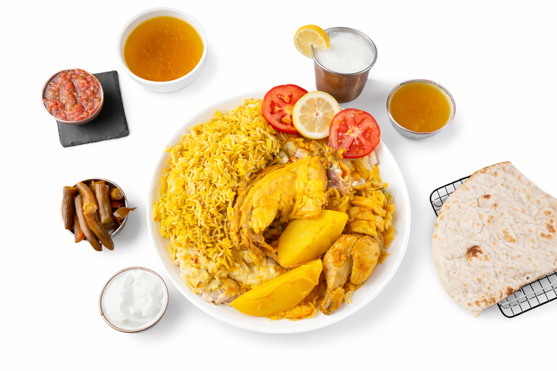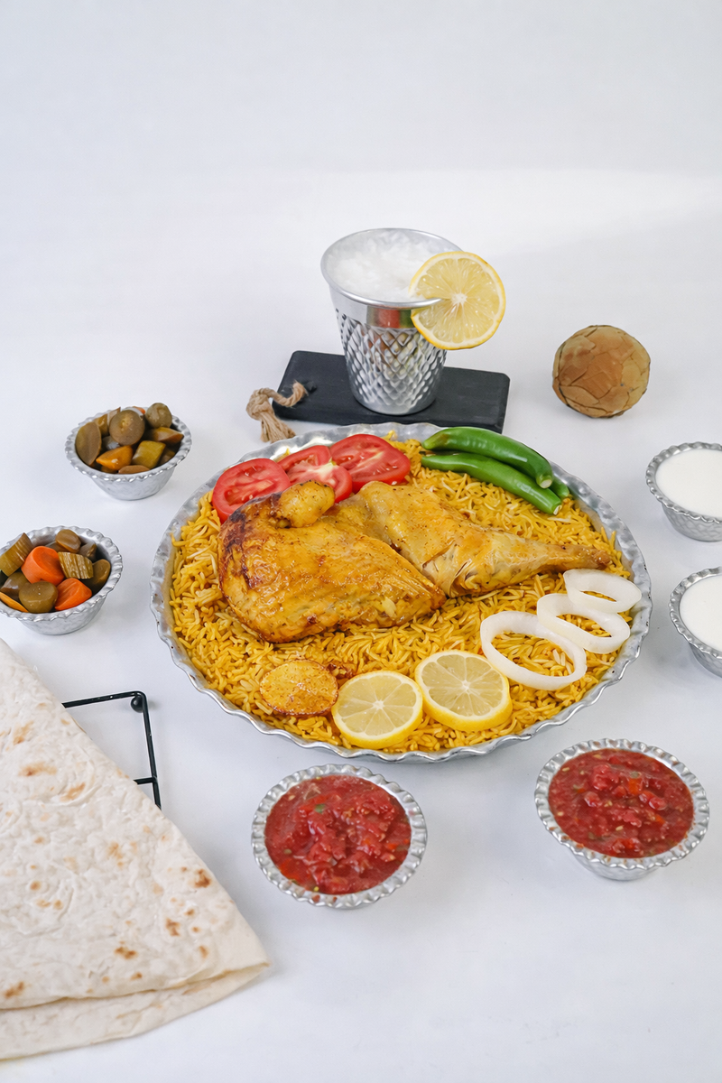 مندي سفطة ضلوع مع نصف دجاجة