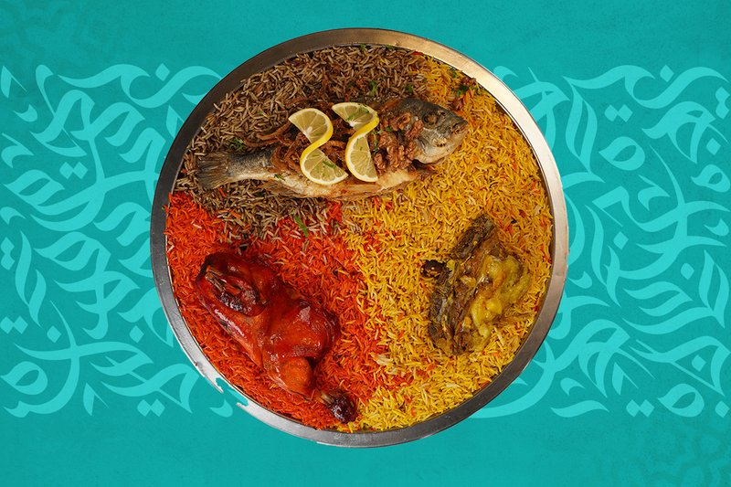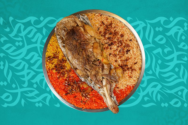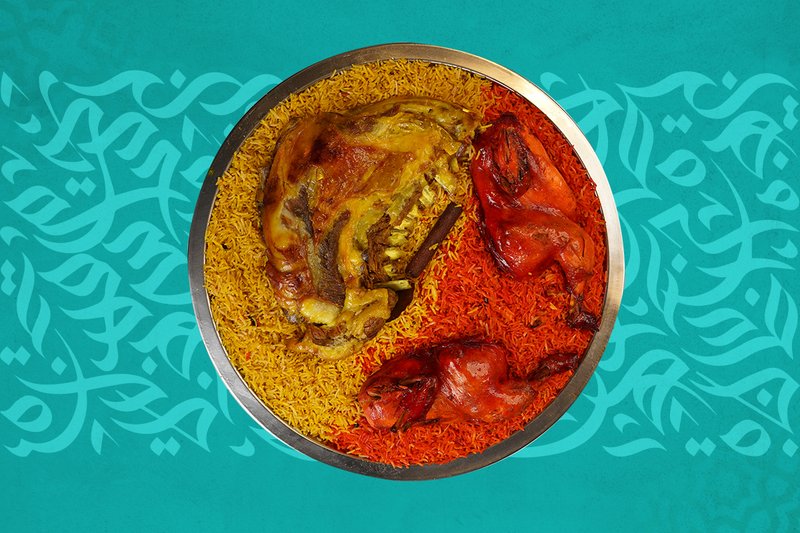 منسف ضلع بخاري مع دجاجة كاملة بخاري