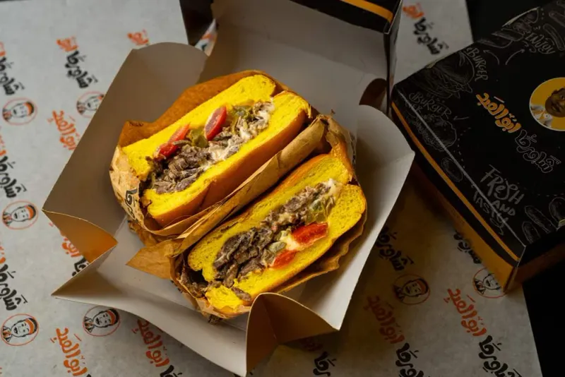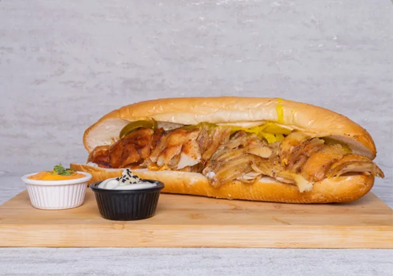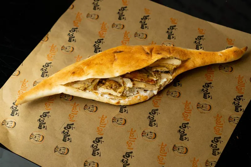 ساندويش شاورما دجاج بالصمون الفرنسي